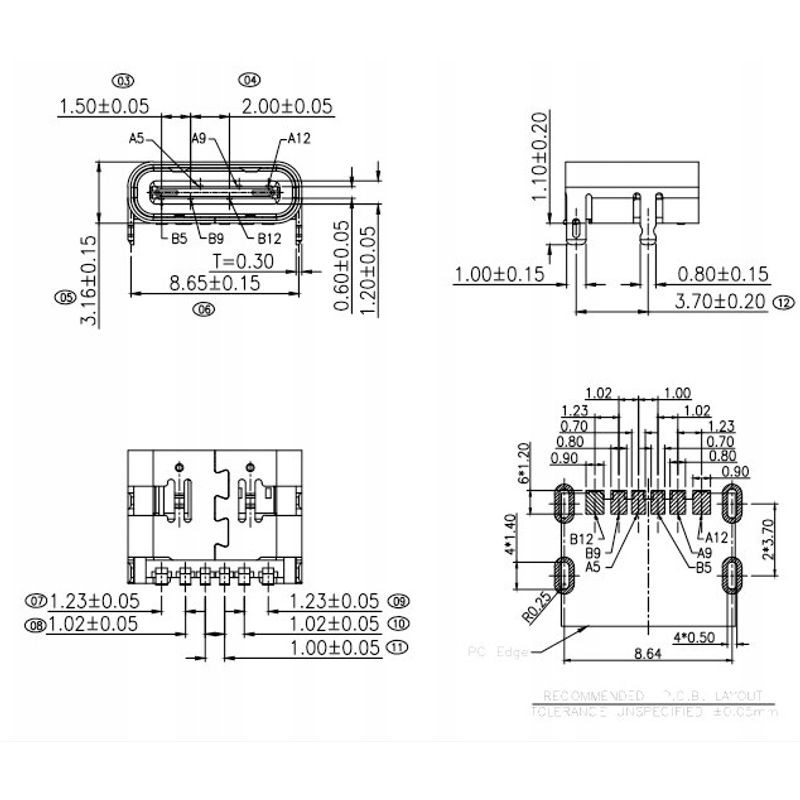 USB TYPE-C FEMALE SURFACE MOUNT 6P