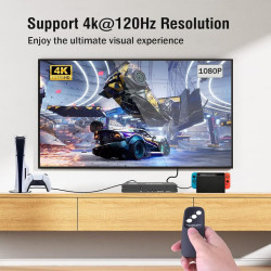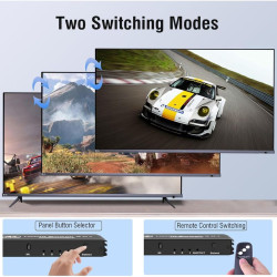 Inputs can be switched with IR remote controller, also can be controlled by button
