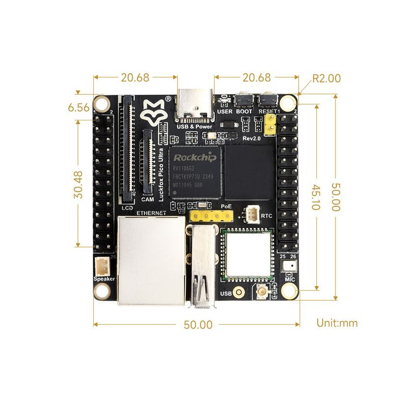 Luckfox Pico Ultra RV1106 Linux Micro Development Board, Integrates ARM Cortex-A7/RISC-V MCU/NPU/ISP Processors