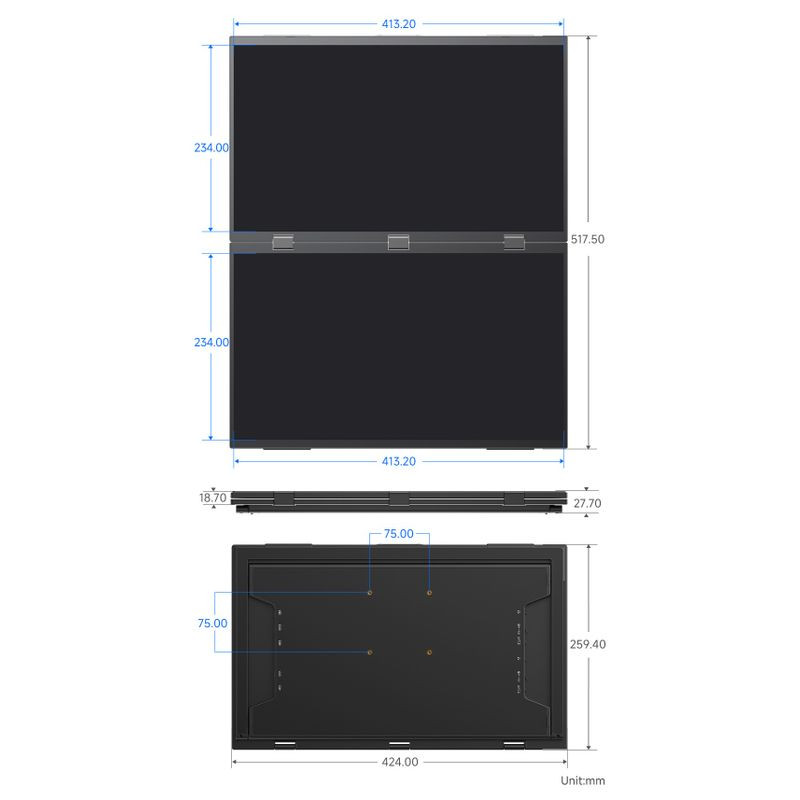 18.5inch Dual-Screen Portable Monitor, Dual-1080p High Definition Foldable Screen, 100% sRGB, 178° Wide Viewing Angle, Built-in Gravity Sensor, Hi-Fi Speaker, Supports Multiple Display Modes