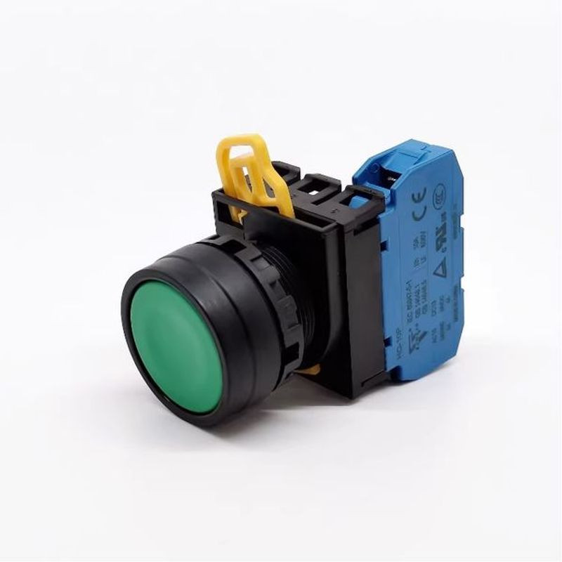 PUSH BUTTON, 16MM GREEN LED, (ON)/OFF MOMENTARY, R16-504BD