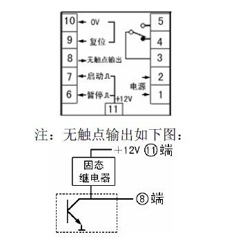 Power, set the T1 and T2 time, start the end of the signal (if you do not need to start, 7 and 11 terminal