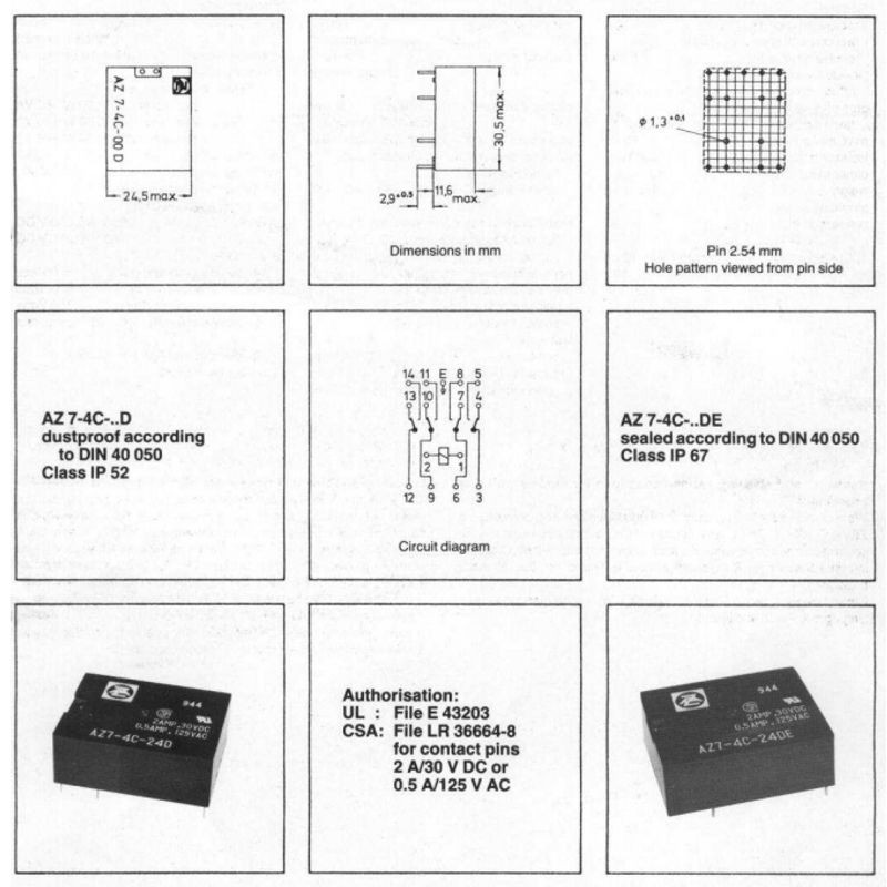 Electromechanical Relay 12VDC 330Ohm 2A 4PDT (30.2x24.6x11.1)mm THT Flat Pack Relay