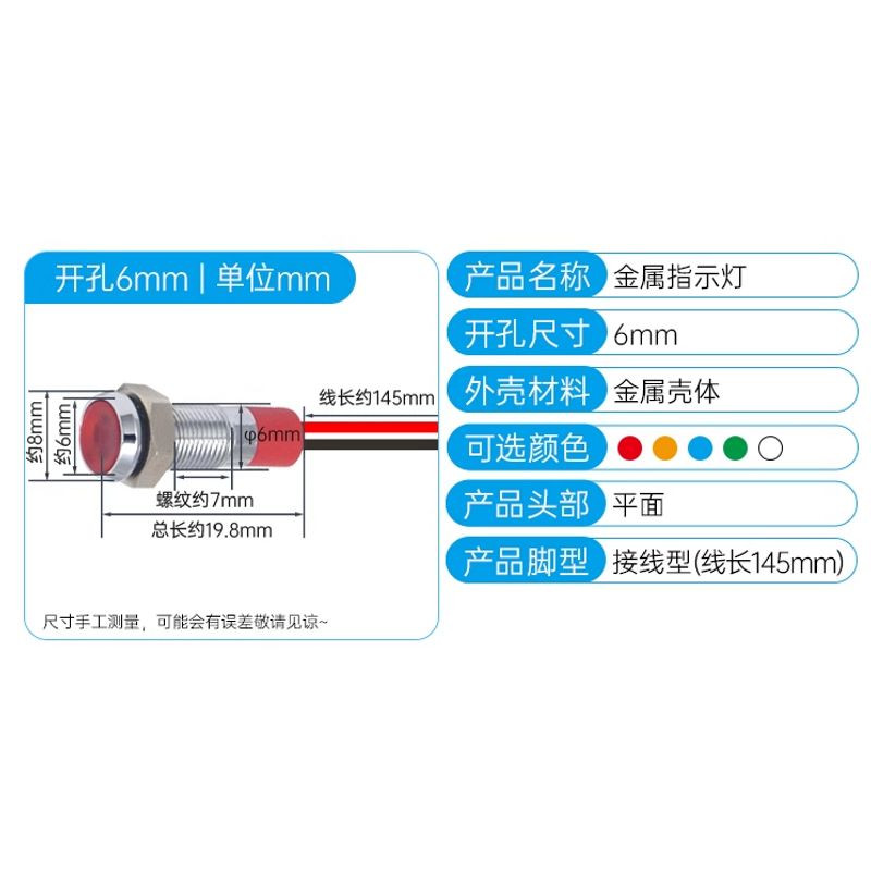 WATERPROOF LED INDICATOR, RED, 24VDC/AC, 6MM, W/LEADS