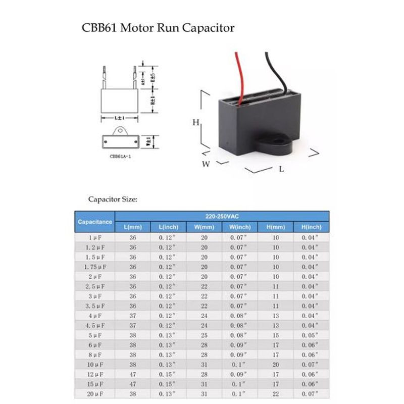 FAN CAP, CBB61, 6uF 250V, W/WIRE