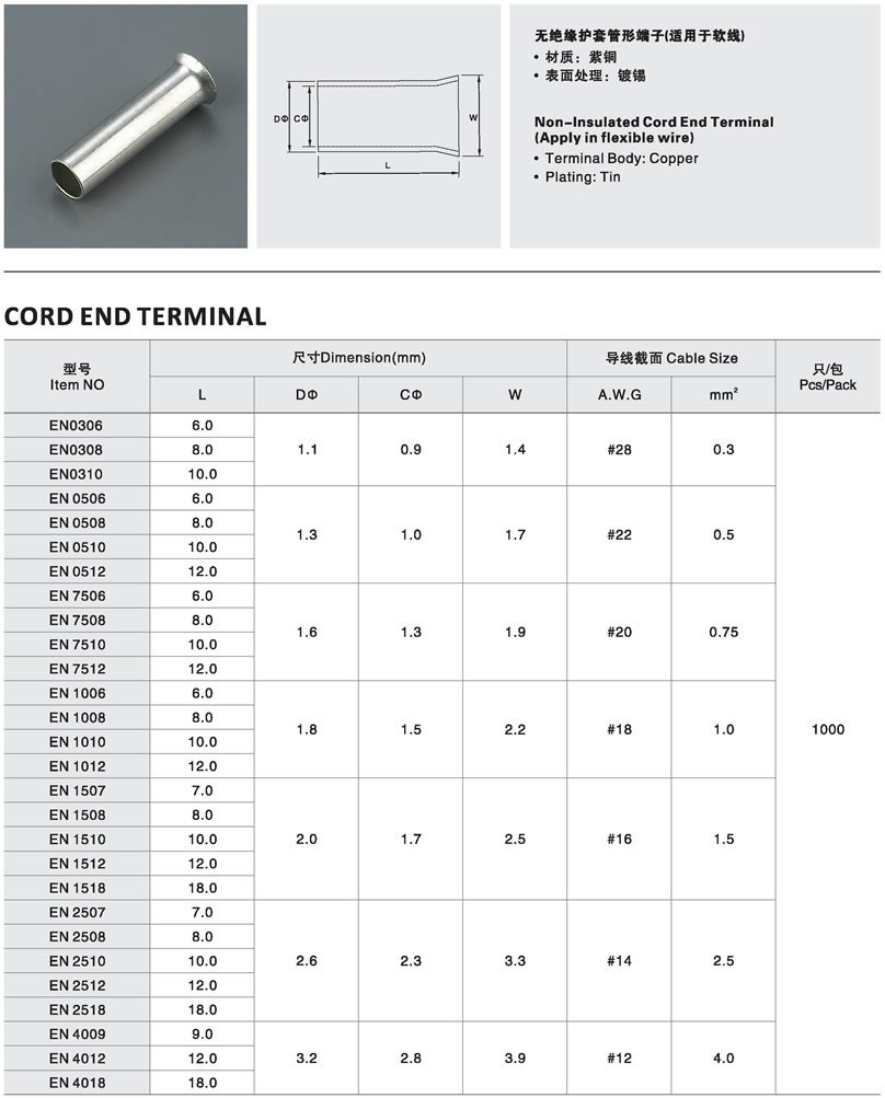 FERRULE TERMINALS E40-12 (12AWG) RED 20PCS/PKG
