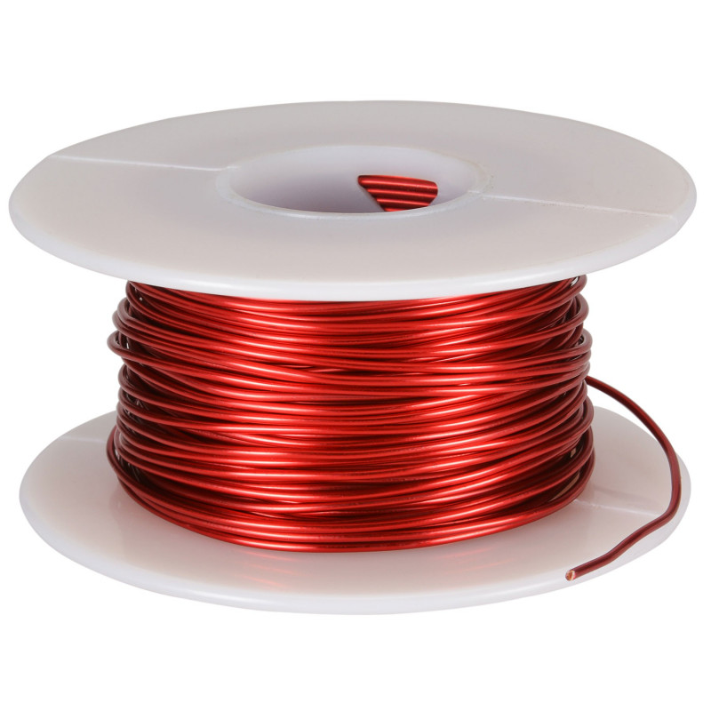 This copper wire has an enamel coating that can be removed with heat (200 Celsius) or can be sand off. Note that to get it to conduct, the enamel coating must to taken off. This enamel magnet wire is 0.59mm in diameter, which is equivalent to a 22 gauge wire. It is approximately 0.4lbs.