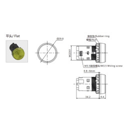 PILOT LAMP LED 110VAC YELLOW, HQ-1T0-U-Y, cUL, IP67, 22MM